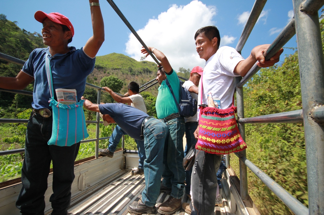 O ile w Birmie mieliśmy pakę wynajętą do własnej dyspozycji, ta którą jeździliśmy w Gwatemali była publiczna. A zasady jakie tu obowiązują są proste – im więcej towaru się zapakuje, tym większa kasa. Skorzystaliśmy z tej lokalnej podwózki by dostać się do rezerwatu Semuc Champey. Zresztą innej opcji po prostu nie było, busy na tym końcu świata nie jeżdżą. Paka rozwozi ludzi do domów w górach lub do pracy w polu, innych potrzeb nie ma. Mieliśmy farta, było dosyć pusto, ale nie bez atrakcji. Towarzyszyło nam m.in. dwóch totalnie nawalonych Gwatemalczyków. Na równej drodze nie mogli się utrzymać, więc zastanawialiśmy się co to będzie. Rzucało nimi bezlitośnie na wszystkie strony, ale dali radę, choć skończyli podróż na kolanach. My zasiedliśmy na worach jakiegoś ziarna. Mary tradycyjnie zasnęła po 10 minutach, nie zważając na niedogodności. Z wioski do rezerwatu jest 10 km kamiennej górskiej drogi. To 10 km to jakaś godzina jazdy.