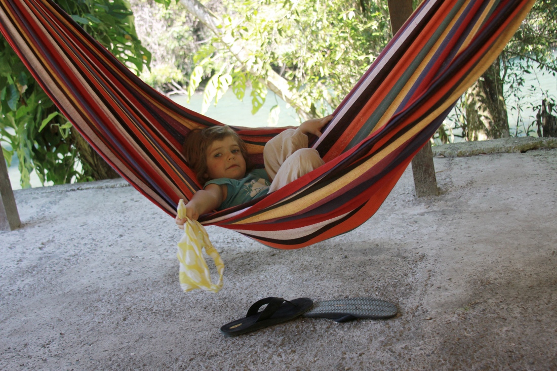 Najważniejsze moim zdaniem kryterium to sposób, w jaki będziemy podróżować. W przypadku Gwatemali i Hondurasu wiedzieliśmy, że będziemy się często przemieszczać. O ile nie jeździmy własnym samochodem, na dłuższych dystansach wózek raczej przeszkadza. Jest dodatkowym bagażem, którego trzeba pilnować i który trzeba zapakować. Podróżując komunikacją publiczną nie jest to łatwa sprawa. Krótkie wypady w ramach pobytu w jednym miejscu zazwyczaj organizowaliśmy transportem typu bus, łódka czy paka, więc i tu wózek był zbędny. Jeśli zaś dużo chodziliśmy to zazwyczaj po dżungli i rezerwatach – tutaj nosidełko, nosidełko i jeszcze raz nosidełko. Były też długie spacery po miasteczkach, ale ich tempo było tak niespieszne, że wózek nie był konieczny. Były również wieczorne włóczęgi w poszukiwaniu miejscowego klimatu i knajpianych rozrywek – w tym przypadku przydałby się wózek. Przyjemniej pije się piwko w knajpie ze znajomymi, niż w samemu pokoju pilnując śpiącego dziecka. Szukaliśmy więc lokali, w których były warunki i miejsce na ułożenie się do snu.