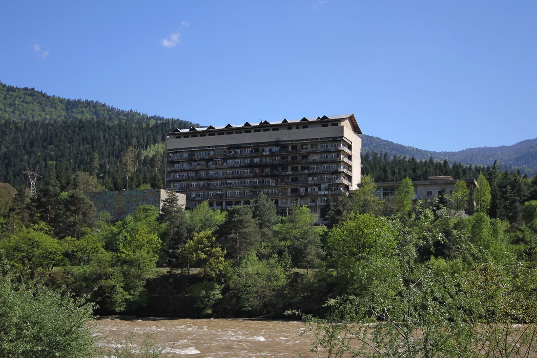 Kontrastem dla tych pięknych okoliczności przyrody są zrujnowane wsie i miasteczka. Bieda się przelewa. Podobno połowa mieszkańców Gruzji mieszka w Tbilisi, co tłumaczy częsty tutaj widok – opuszczone domy, szkoły, urzędy, fabryki. Mam wrażenie, że połowa zabudowań każdego miasteczka to pustostany. I te opuszczone fabryki, monumentalne i rozległe. Niechciana pamiątka sowieckich czasów. Sierp i młot płowieje na ich kominach, a w środku hula wiatr. No i coś jeszcze – bloki. Niby nic dziwnego, w Polsce też je mamy. Ale gruzińskie blokowiska to zupełnie inna „jakość”. Wyrastają niespodzianie pośród gór. Mała wioska, małe domki, dwa sklepiki i nagle 15 piętrowy kolos. Gdyby nie pościel susząca się za oknami nie pomyślałabym, że ktoś tam mieszka. Brudna, oskubana, bywało że częściowo spalona lub zawalona betonowa płyta. W większych miastach kontrastów jest równie dużo. Widać inwestycje (zresztą na dobrym poziomie), a tuż obok stare, walące się domy. Znamiona czasów transformacji.