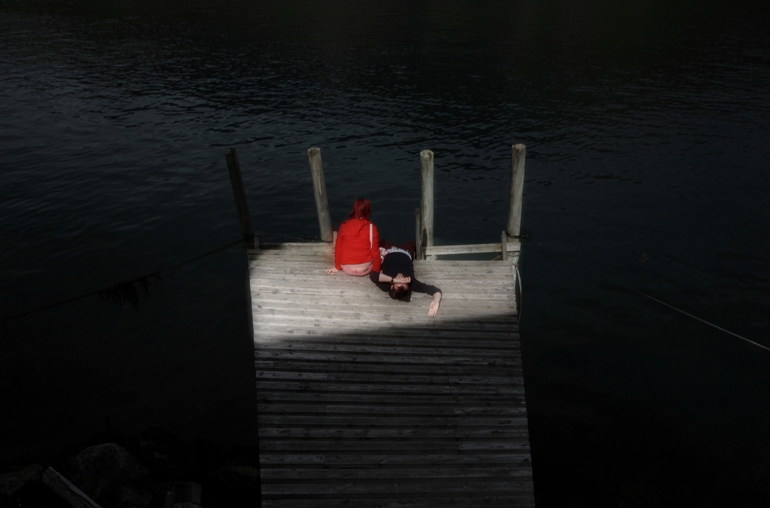 Obok zatrzymywał się prom, który zabierał chętnych na drugą stronę fiordu. Korzystaliśmy z tej rozrywki. Sunął powolnie do przeciwległego brzegu, a tam zasadniczo było to samo. Kładliśmy się na drewnianych pomostach, Mary właziła do stojących przy drodze traktorów, włóczyliśmy się pustymi drogami. Właśnie, w tej części Norwegii panuje porażająca pustka. Trafialiśmy do miasteczek, w których wszystkie domy były pozamykane, na ulicy nie zjawił się żywy duch, nie leciał dym z komina. Puste i wyludnione miejsca. Czasami robiły przerażające wrażenie, zwłaszcza w tych okolicznościach przyrody.