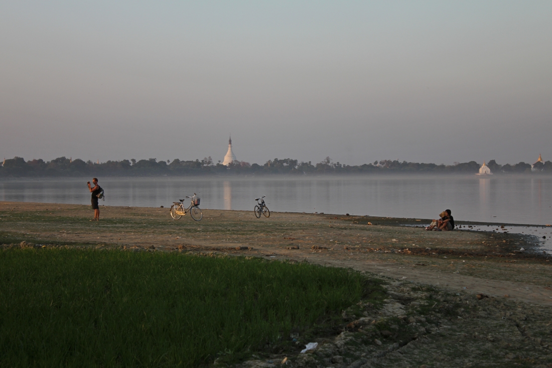Amarapurę odłożyliśmy na kolejny dzień. Wraz z nią kilka mniejszych świątyń oraz U Bain – najdłuższy tekowy most na świecie. Najatrakcyjniejsza pora na jego oglądanie (o zachodzie słońca) jest jednocześnie najmniej korzystną porą (masa turystów). W drodze Marysia solidnie przysnęła. By jej nie budzić podzieliliśmy się na dwie grupy, więc zeszło nam tutaj dwa razy więcej czasu. Niemal doczekaliśmy momentu, kiedy zadowolone ze zrobionych zdjęć tłumy zapakowały się do swoich autokarów i odjechały.