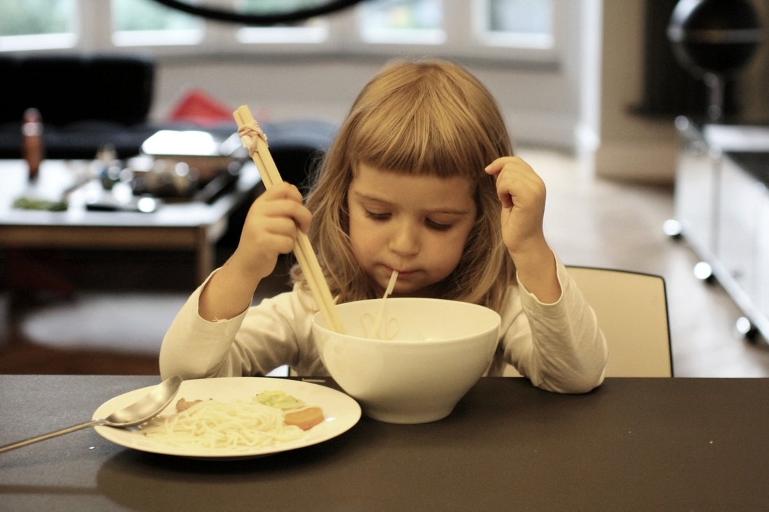 Byliśmy zaskoczeni, że tak łatwo poszło. Wielu dorosłych ma problem z opanowaniem tej sztuki. Tymczasem Mary złapała pałeczki i zaczęła jeść. Stół był do mycia, ubrania do prania, ale makaron zniknął. Jak dziecko nauczyć jeść pałeczkami?
