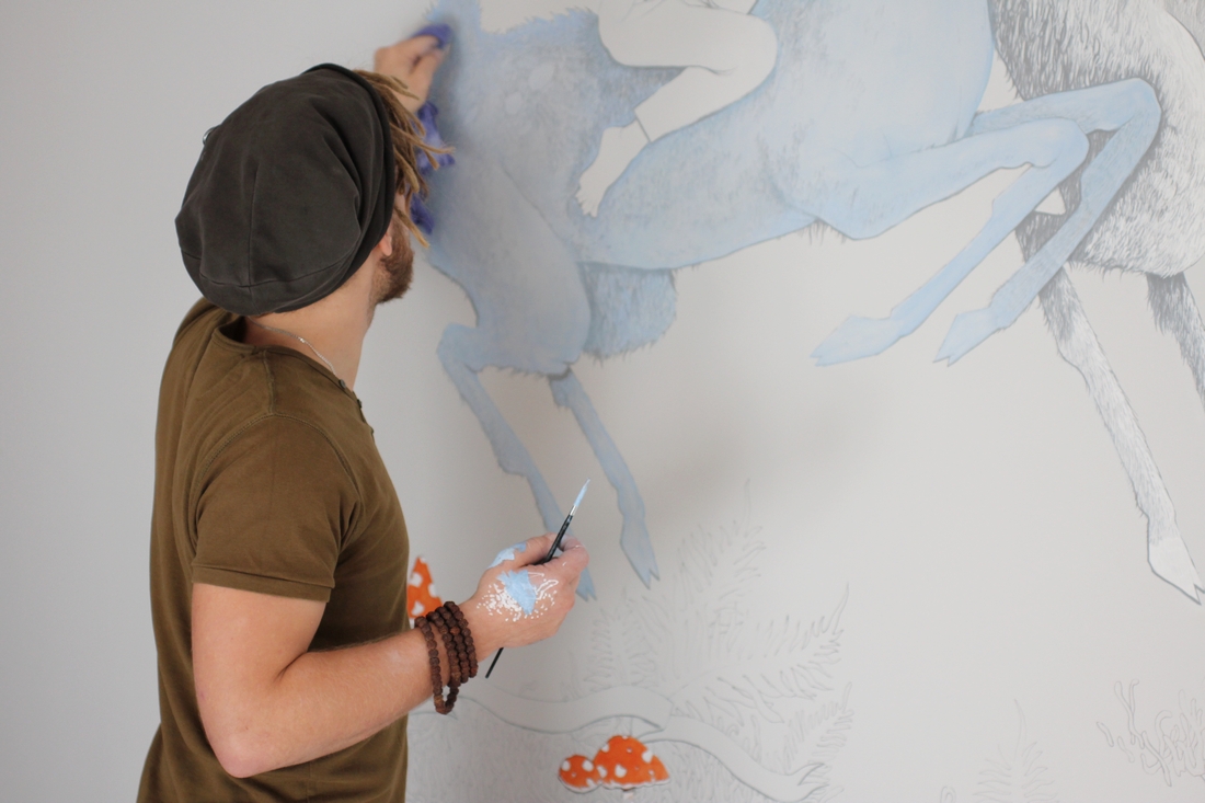 Na realizację pomysłu przyszło nam czekać rok. Wreszcie nadszedł czas przeprowadzki do własnego pokoju. Wtedy zjawił się Jubaal. Z kilkom pomysłami i szkicami. No i Marysia wybrała. Nie całkiem po naszej myśli, ale to jej pokój i jej wybór. Choć nam spodobał się niedźwiedź, Mary wybrała jelonki. Wyglądało na to, że dobrze wie, czego chce. Bardzo nas to zaskoczyło. Jakby tego było mało, z Jubaalem dogadywała się doskonale i chętnie przeszkadzała mu w pracy. Z niecierpliwością wracała z przedszkola, by zobaczyć co zadziało się na jej ścianie i spotkać Jaśka. Może nawet przez moment przestała myśleć o karierze piosenkarki.