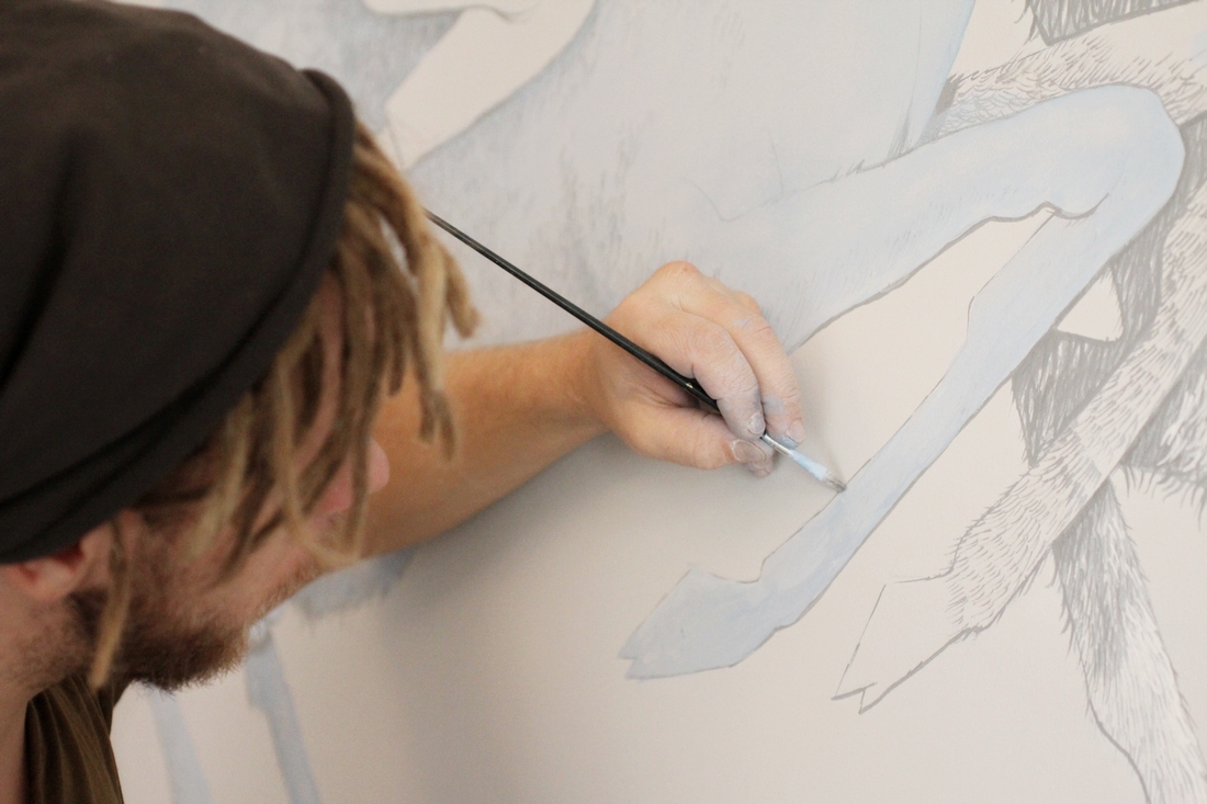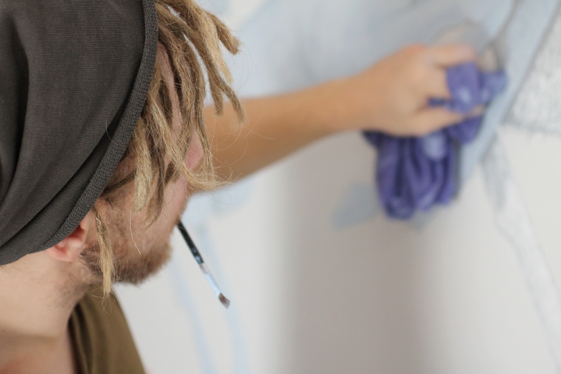 Pamiętam ten dzień. Myślą tą od razu podzieliłam się z Marcinem. Uśmiech na jego twarzy mówił wszystko. Od razu odszukaliśmy autora „spalonych” murali. Tak się zdarzyło, że Jubaal kręcił się po okolicy i tak się składało, że się znaliśmy. Ku naszej radości tak się skończyło, że zapalił się do pomysłu zostawienia swojego śladu w pokoju naszego dziecka. Jak by nie patrzeć, to wyraz zaufania. Jubaalowe dzieło może odcisnąć swój ślad na snach, marzeniach i zabawach Marysi. Może wpłynąć na to, jak będzie patrzeć na obrazy, kolory i kształty świata. Może być tym, co wspominać będzie jako dorosła dziewczyna.