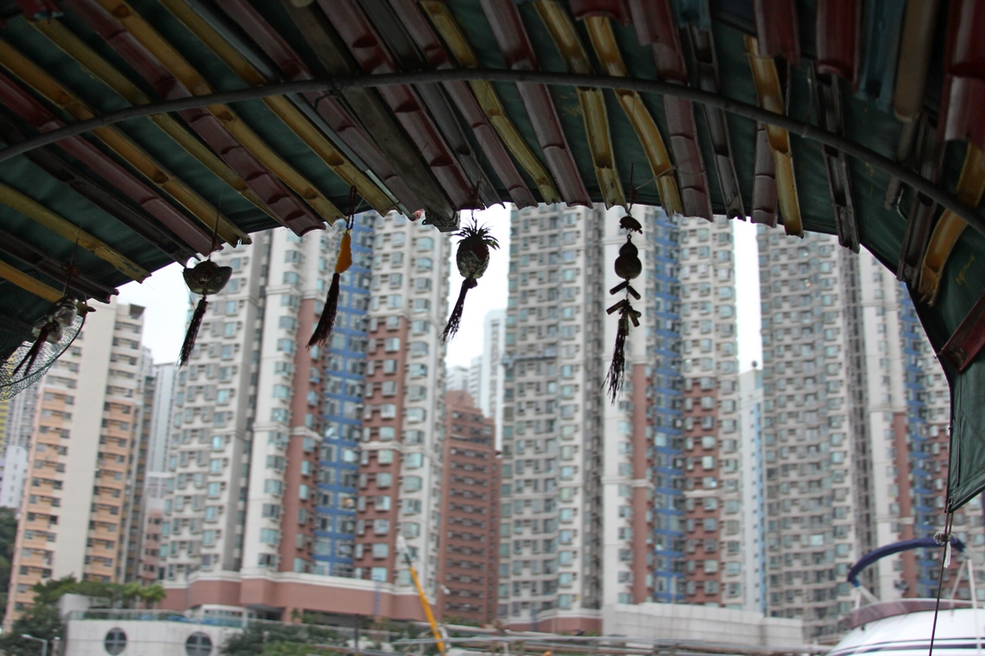 Blokowiska szczególnie uderzały podczas wycieczki do Aberdeen. Mieliśmy obejrzeć starą rybacką wioskę, gdzie ludzie nadal żyją i handlują na łodziach. Słysząc o niej w naszych głowach powstał obraz odległego zakątka wyspy, gdzie znajdziemy coś małego, drobnego, starego, co żyje nieco wolniej i ciszej. Czy to dziwne, że właśnie takie mieliśmy skojarzenia z „wioską rybacką”? Też bylibyście zaskoczeni. A potem uśmialibyście się sami z siebie. Czego my się spodziewaliśmy? Przecież jesteśmy do cholery w Hong Kongu.