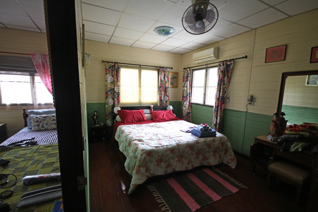 Jest różowo, zdjęcia nie kłamały. Jest bardzo zielono, przy domu i generalnie w okolicy. Jest odrobinę mokro, co nas trochę martwi. Małe bajorka dookoła i kanał wzdłuż uliczki mogą być wylęgarnią bzykających dręczycieli. Ale spokojnie, w oknach i drzwiach są moskitiery. W oknach jest coś jeszcze – firanki! Wreszcie mamy w domu firanki.