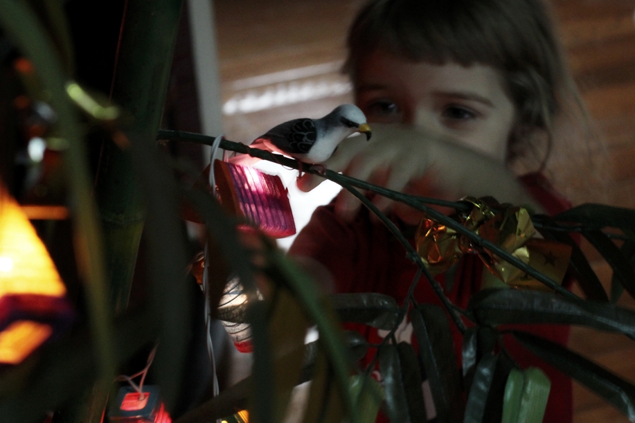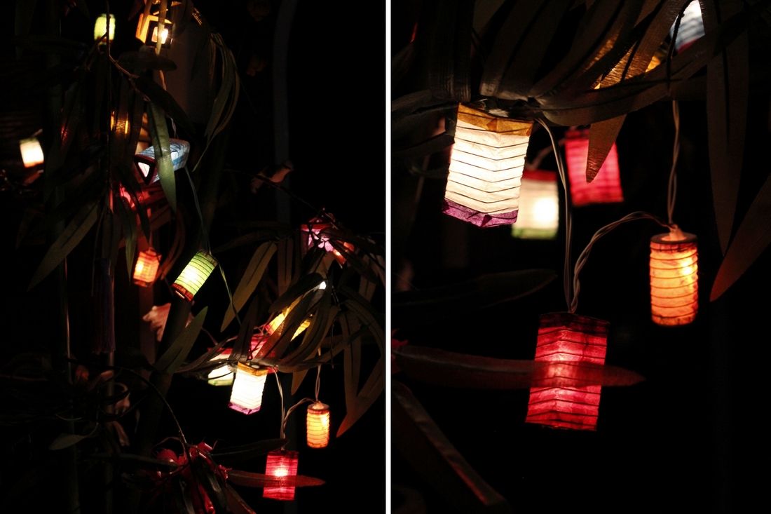 Choinka jest. Na sztucznych bambusowych gałązkach zawisły lampiony, gumowe kaczki i bombki z papieru do pakowania prezentów. Ekologicznie i hand made.