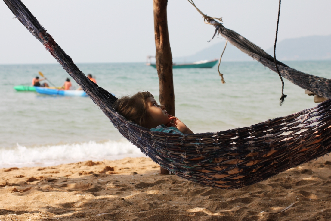 Co tu można znaleźć? Piasek, choć wcale nie biały. Plaża, całkiem wąska i nie za długa. Kilka innych plaż, dzikich i odludnych, gdzieś tam za dżunglą. Bungalowy na piasku, wszystkie w dość niskim standardzie. Prądu nie za dużo, może 3 godziny dziennie. Wi-fi wcale. Powtarzam, wcale. Raf koralowych żadnych, może kilka kolorowych rybek. Knajp chyba 6. Bary może 3. Kajaki, 1- i 2-osobowe. Bagietki i naleśniki o każdej porze. Krabów od zatrzepania. Hamaków nie do zliczenia. Świętego spokoju nieskończoność.