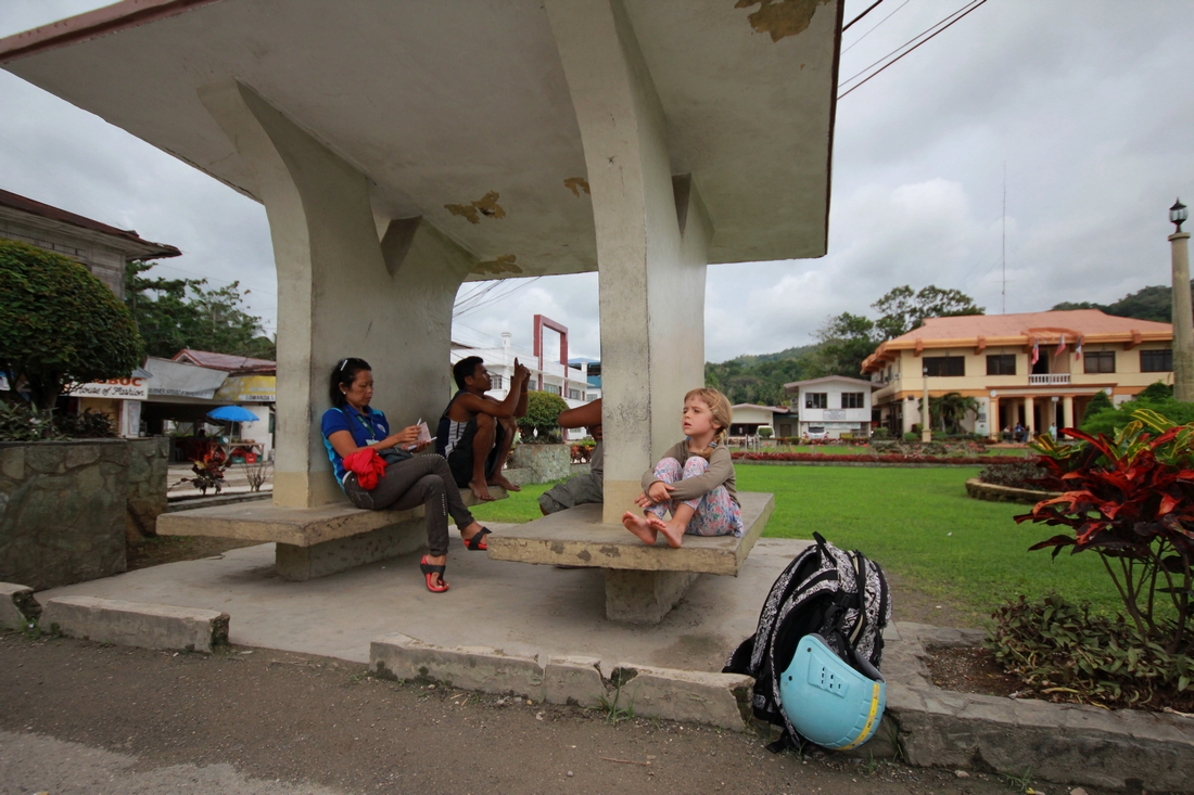 Marysia ciągle przeżywała spotkanie z małpiakami. Czuliśmy się wyśmienicie, choć słońce schowało się za chmurami i zaczął padać deszcz. Ruszyliśmy więc dalej, w głąb Boholu. Super było pędzić krętymi drogami, po delikatnych wzniesieniach, między zielonymi polami ryżowymi. Ludzie machali do nas i wykrzykiwali pozdrowienia. Wreszcie dotarliśmy do Loboc. Właśnie rekonstruowali mosty zniszczone podczas tajfunu (wszystkie jednocześnie), więc musieliśmy nadrobić drogi, by przedostać się na drugą stronę rzeki Loay. Loboc to bardzo przyjemne małe miasteczko. Gdybyście mieli więcej czasu proponuję zatrzymać się tu na kilka dni. Okolice są piękne. Wycieczki skuterem to czysta przyjemność. W pobliżu Czekoladowe Wzgórza, sporo tras trekingowych, wodospady, dżungla i malownicza rzeka. Bo Filipiny to nie tylko plaże, ale o tym już wspominaliśmy.