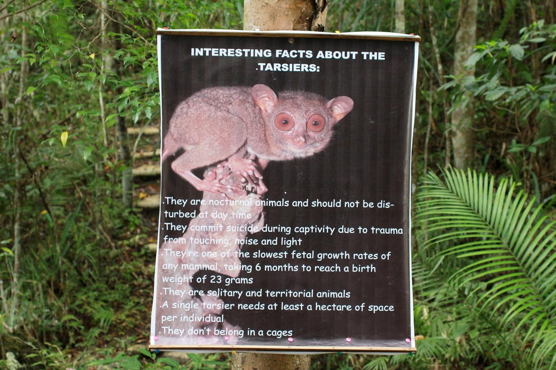 Pierwszy przystanek wybrała Marysia — Sanktuarium Tarsierów. Jeśli chcecie zobaczyć te cudaczne zwierzaki, polecam pojechać właśnie tam i tylko tam. Choć nie ma gwarancji ile tarsierów zobaczymy, zobaczymy je wolne, szczęśliwe i w naturalnym środowisku. Sanktuarium to po prostu kawałek dżungli. Postawiono tu kilka lamp, by nocą zwabić smakowite insekty, dla których łakome tarsiery przybywają na okoliczne drzewa. Każdego ranka pracownik sanktuarium poświęca kilka godzin, by wśród liści szukać zwierzaków, które będzie mógł pokazać turystom. A jest to nie lada sztuka. Tarsiery to najmniejsze małpiaki świata, mają średnio 15 cm długości. Nam udało się zobaczyć 4. Siedziały wtulone w gałązki, czasami zerkały na nas swoimi kosmicznie wielkimi oczami. Byłam zaskoczona takim działaniem sanktuarium. To nie ZOO. Tutaj zwierzaki same przychodzą lub nie, a my ukryci między drzewami liczymy na to, że jednak przyjdą. Jest oczywiście mnóstwo innym miejsc, gdzie tarsiery są zawsze. W klatkach. Np. w pobliskim Loboc. Zanim się tam udacie pamiętajcie — tarsiery popełniają samobójstwo z powodu stresu, jaki odczuwają podczas głaskania ich, dotykania i hałasowania. To małe i delikatne stworzenia. Dajcie im przeżyć. Lepiej popatrzeć na żywego tarsiera w sanktuarium, niż pogłaskać zamkniętego w klatce, który wkrótce zdechnie.