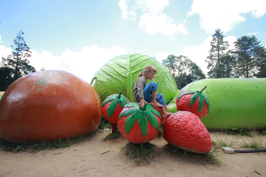 A popołudniami… cóż, trzeba było oddać malutkowi co jego. Spędzaliśmy czas na placu zabaw. W kraju, gdzie dominującą religią jest islam, a wokół każdej kobiety kręci się spora gromadka dzieci, atmosfera jest dzieciom niezwykle przyjazna. Placów zabaw jest wiele. Wśród niech ten jeden, najważniejszy, w samym centrum miasteczka. A obok niego ukochana atrakcja Marysi – kolosalne warzywa i owoce.