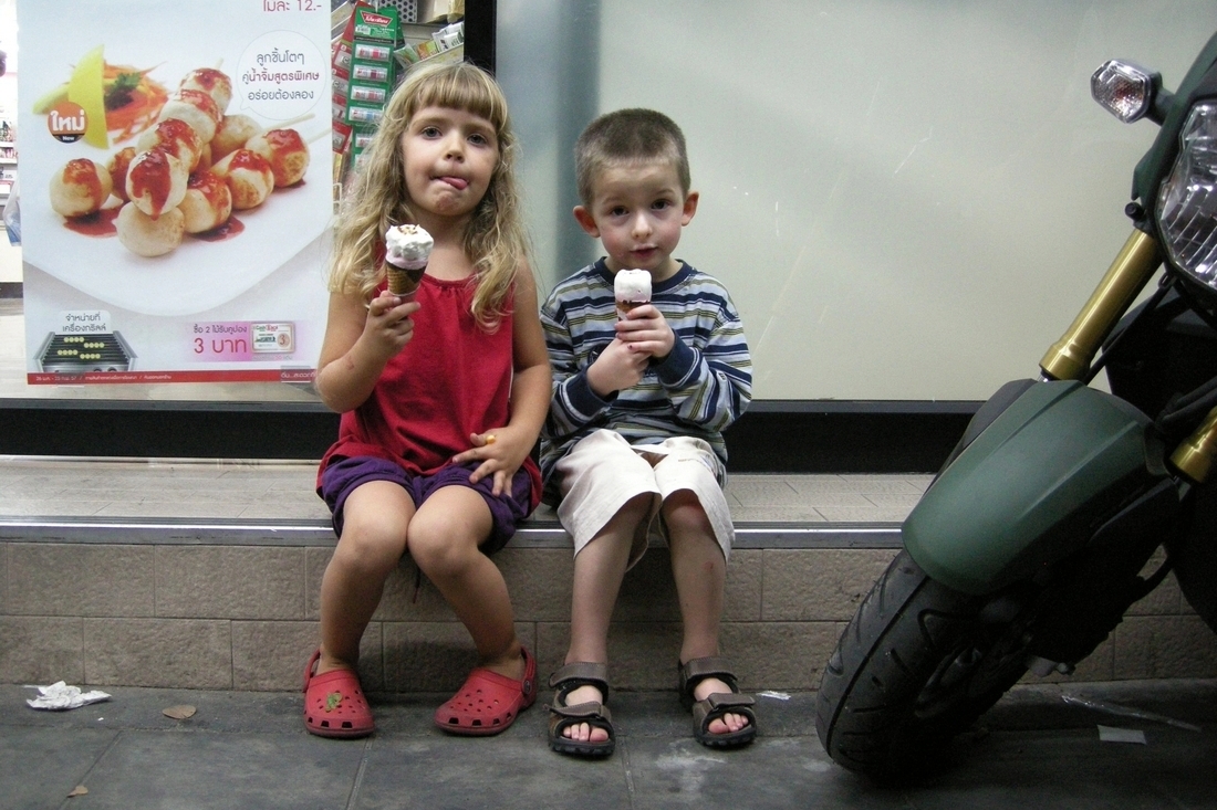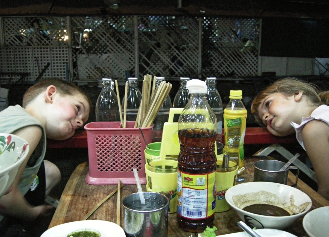 Często odwiedzaliśmy miejsca, gdzie wiedzieliśmy, że spotkamy koleżanki Marysi. Gdy jeszcze przypadkiem te koleżanki przyprowadziły swoje koleżanki, zabawa była przednia. Najczęściej były to miejsca na bazarach, gdzie jadaliśmy. Pracujące tam kobiety często nie miały z kim dzieci zostawić, a ponadto 5 letnie dziewczynki w Tajlandii pomagają już rodzicom w pracy.