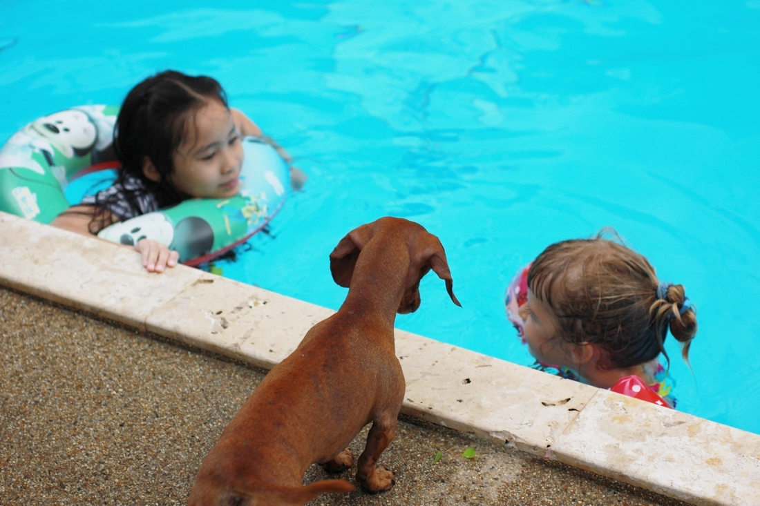Do „ostatniej kropli” wykorzystywaliśmy wizyty dzieci w naszym ogrodzie. Czasami goście przyjeżdżali całymi rodzinami i wtedy radość była największa. Często też w odwiedziny wpadała rodzinka naszych tajskich gospodarzy. Gdy tylko się zjawiali, cały ogród przeszywało głośnie „Mariaaaaaaaaa, swimmmming!”.