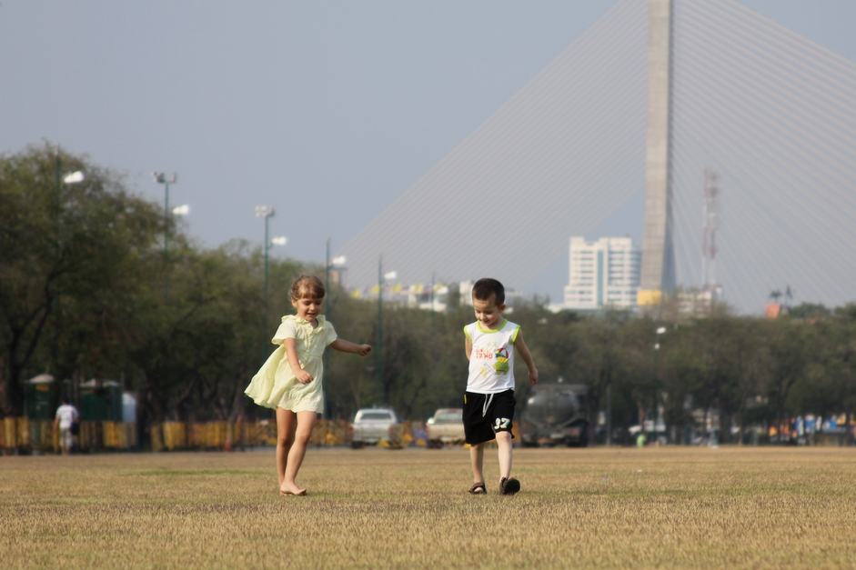 Zieleni w Bangkoku jak na lekarstwo. No chyba, że w naszym ogrodzie. Nauczyliśmy się z tym żyć i czerpać ile się da z betonowych okoliczności „przyrody”. Ale kiedy tylko na naszej drodze trafiła się trawa… zdejmowaliśmy buty.