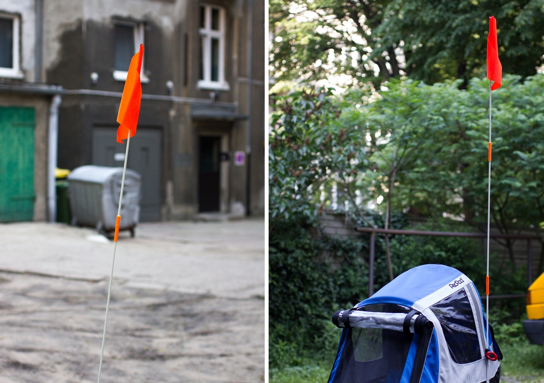 Na koniec rzecz chyba najważniejsza — jak się to wozi? Jestem zaskoczona, bo miałam wiele obiekcji. Sądziłam, że przyczepka nada się tylko na dłuższe dystanse i wycieczki za miasto. Wydawało mi się, że Marysia jest już na to za duża. Obawiałam się jazdy po mieście, zazwyczaj zatłoczonym, zakorkowanym i średnio przystosowanym do kółek. Martwił mnie brak kontaktu z malutkiem, podskakującym gdzieś za tylnym kołem. Że nie wspomnę o mijających nas samochodach, vanach, ciężarówkach, tirach. Tak więc asekuracyjnie trzymałam fotelik w pobliżu.