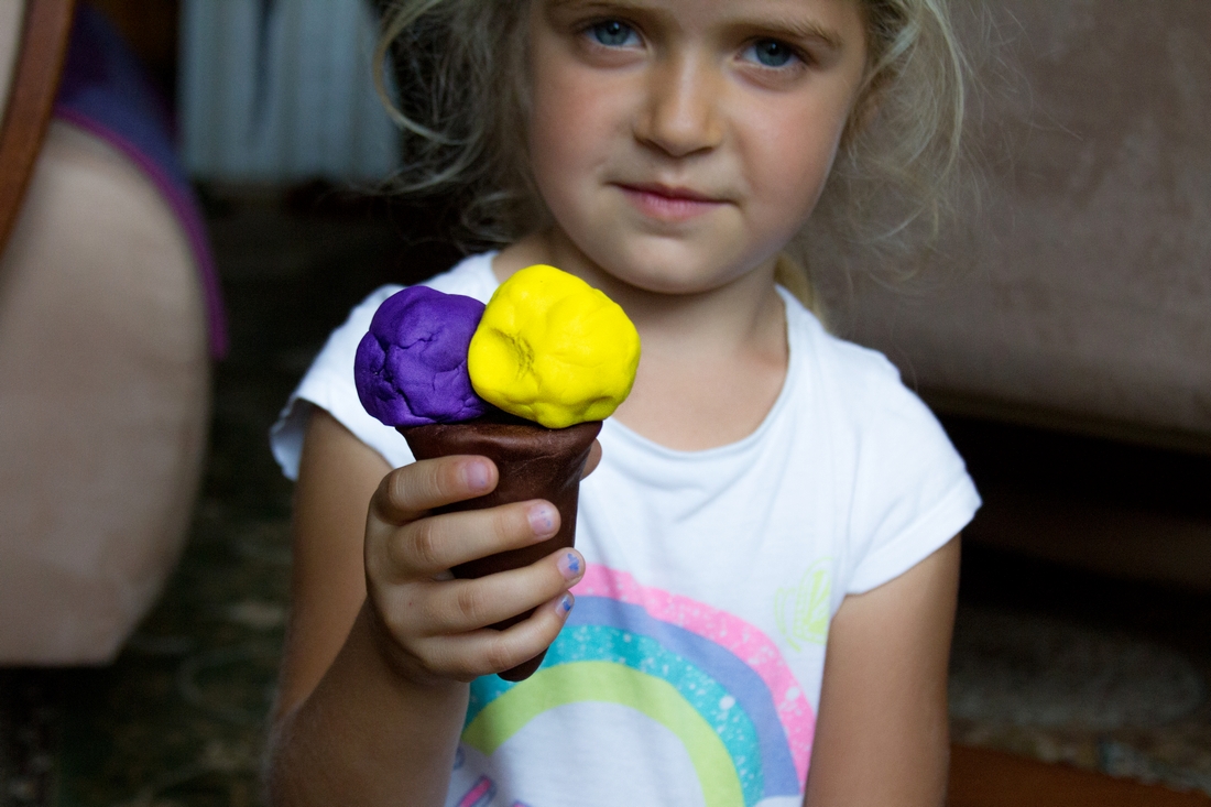 | This is my ice cream. Is it ready? No! I want more scoops. |