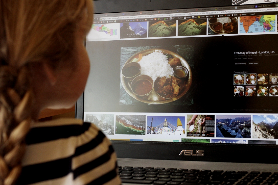 Przy każdej okazji, o czym tylko sami wiemy. Gdzie to jest i jak tam jest. Co tam będziemy robić. Co dobrego będziemy jeść. W jakim języku tam mówią. Jakie zwierzęta tam mieszkają. Jakie wycieczki będziemy sobie organizować. Gdzie będziemy mieszkać. Opowiadamy o górach, śniegu i lawinach. O słoniach, z którymi można kąpać się w rzece. O momosach i zupach z soczewicy.