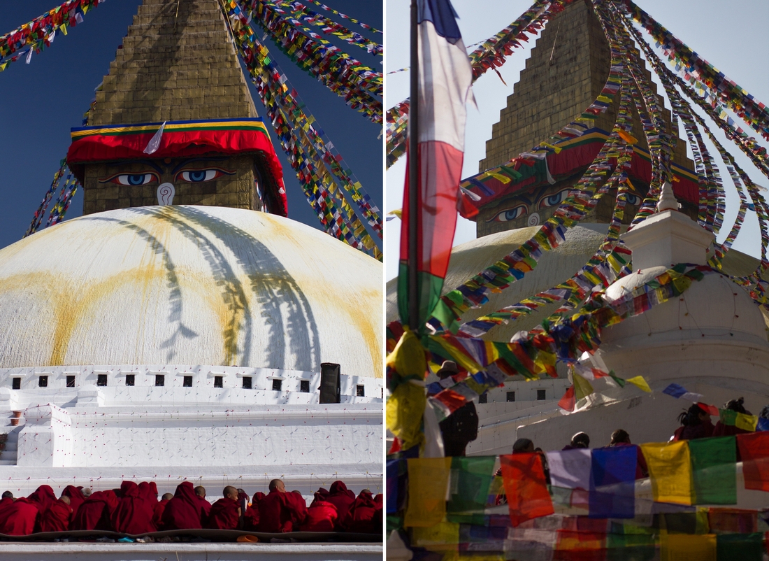 Wyznawcy buddyzmu to zaledwie 10% Nepalczyków, jednak buddyjska symbolika jest tutaj wszechobecna. Piękne białe stupy wyglądają z podwórek, uliczek i placów, wyciągają swoje głowy do słońca i wodzą dokoła oczami Buddy. Zaś wokół nich kwitnie życie. I to jest najpiękniejsze.