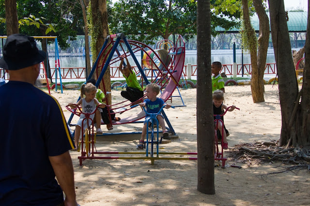 ZOO jest bardzo ładnie położone, wzdłuż jeziora Chawak. Popołudniu słońce rozświetla wodę na pomarańczowo, dookoła błoga cisza i spokój. Lokatorzy mają doprawdy cudowne… klatki z widokiem. No właśnie, chciałoby się powiedzieć, że tylko te kraty psują widok. Z natury jestem przeciwnikiem idei ZOO. Jeszcze nie znaleźliśmy miejsca, które zmieniłoby moją opinię, na temat trzymania zwierząt w zamknięciu. Choć są miejsca bliskie ideału — Zoo Safari w Borysewie, a także miejsca, gdzie szanuje się zwierzęta — Sanktuarium Tarsierów na Boholu. Ale są też takie — jak delfinarium w Singapurze — które do łez doprowadzają. Powszechnym w Azji widokiem są też zaklinacze węży, właściciele małpek na smyczy lub słoni oplecionych łańcuchami. Nie ma co chować głowy w piasek. Pokazuję Marysi tych ludzi, ich skrzywdzone zwierzęta i uczę, by grosza do ich koszyka nie wrzucała. Czasami też zabieram ją do ZOO, opowiadam o zwierzakach i jednocześnie o tym, jak one biedne smucą się w niewoli. Może dlatego będąc w ZOO, woli szaleć na placu zbaw zamiast patrzeć w oczy smutnych zwierząt?