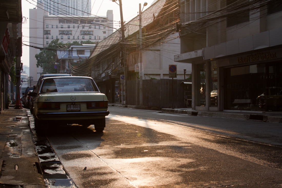 Między lśniącą bielą ambasadą a ruiną portowych budynków rozstawiły się uliczne restauracje. Oddalając się od rzeki znajdziecie małe galerie sztuki i kilka luksusowych butików. Ale tuż przed nimi coś jeszcze. Wąska ścieżka odbija w lewo. Skręcić, czy nie? Wchodzimy w labirynt wąskich ścieżek, gęsto zabudowanych małymi drewnianymi domami. Siedzący przy domach muszą podciągać kolana, by nas przepuścić. Jeszcze jeden zakręt w tym labiryncie i przed nami wyłania się meczet. Za nim ogród, zieleń, rodziny z dziećmi wysiadują na ławkach. Jak się bliżej przyjrzycie zauważycie, że ten ogród to muzułmański cmentarz. Muzułmańska oaza w środku tętniącego miasta. A jak zerkniecie w górę, znowu zobaczycie pnącą się w górę stal. To właśnie jest Bangkok.