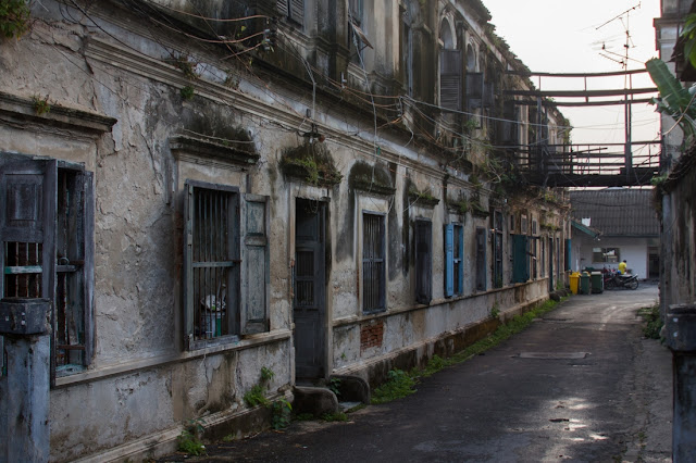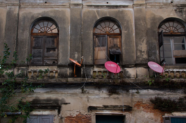 A tutaj same cuda. Jednak żeby je znaleźć, zamiast uciekać do głównej ulicy należy skręcić tam, gdzie wygląda na puściej, ciemniej, biedniej, nawet brudniej. Czasem wbrew instynktownym odruchom. Znaleźliśmy się w starej portowej dzielnicy Bangkoku, niegdyś centrum wymiany handlowej między Tajlandią i resztą świata. To tłumaczy, dlaczego wszystko zdaje się tutaj nie na miejscu – szeroka ulica, potężne kamienice, podejrzany zapach kolonializmu. W pobliżu znajduje się katolicki kościół, wokół niego odrestaurowane kolonialne budynki, katolicka szkoła, rzeźby świętych. Ale to tylko jedno oblicze portowej dzielnicy. Zaledwie przecznicę dalej wchodzimy w inny świat, choć w podobnych kolonialnych murach ukryty. To piękny budynek Urzędu Celnego, ale zamiast blichtru podziwiamy obdarte ściany, osmolone fasady, okna bez szyb, gdzieś suszy się pranie, koty biegają po rdzewiejących rowerach. Wygląda jak wielki squat, obecnie zamieszkały przez rodziny strażaków pracujących tuż obok. A kiedy zadrzecie głowę ponad tę ruinę zobaczycie tarasy luksusowego hotelu Shangri La i złotą kopułę kondominium obok. A gdy wychylicie głowę za róg wpadniecie na nowoczesny budynek ambasady Francji. To właśnie jest Bangkok.