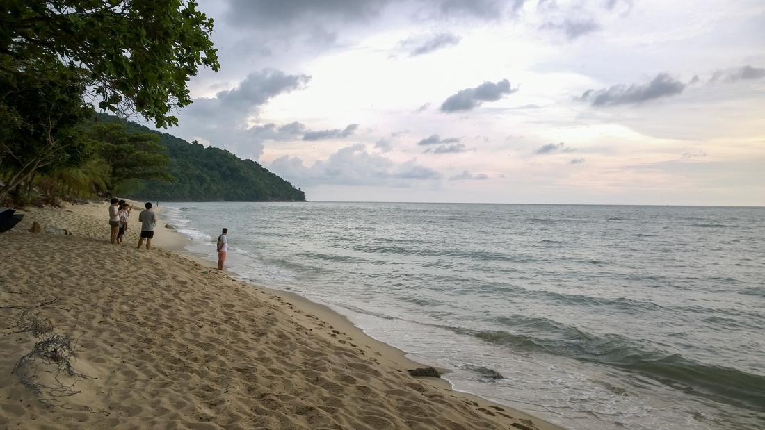 Skierowaliśmy się na zachód, drogą prowadzącą wzdłuż Baru Feringghi. Z plażami nie wiązaliśmy wielkich planów. Tutejsze wybrzeże to nic innego, jak ciąg hoteli i kurortów, a to nie w naszym guście. Ale same plaże trzeba przyznać, wyglądają całkiem przyjemnie. Mieliśmy okazję dobrze im się przyjrzeć, bo pierwsza tego dnia ulewa zatrzymała nas w jednej z plażowych jadłodajni. Czekając na przejaśnienie wciągnęliśmy też pierwszą tego dnia Penang Laksę (lokalna zupa rybna).