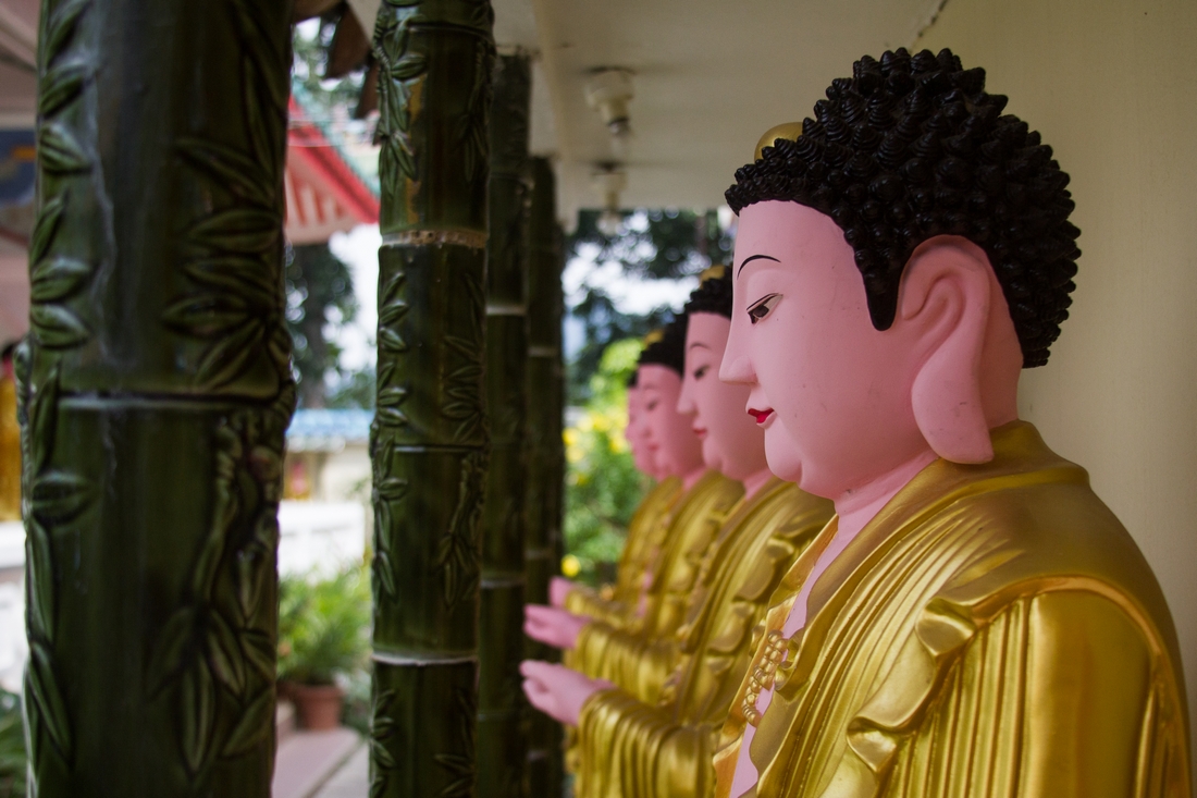 Mając skuter warto zatrzymać go na dłużej i zrobić sobie jeszcze jedną wycieczkę — Kek Lok Si. To takie „must see” na Penangu, jeden z największych kompleksów świątynnych w Azji. I rzeczywiście zrobił na nas wrażenie, ale głównie z oddali. Kiedy podjeżdża się do wzgórza całość robi majestatyczne wrażenie. Z bliska wygląda nieco jak w Disneylandzie. Piękny jest jednak widok na wyspę. Podobny zobaczycie po wjechaniu na Penang Hill. To tuż obok świątyń, więc można połączyć obie wycieczki. A żeby dostarczyć sobie więcej wrażeń, podobno najlepiej wspiąć się samemu na wzgórze, najlepiej oczywiście o świcie.