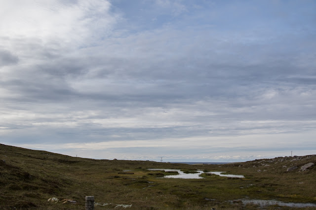 Dzień był bury i ponury. Trasa ze Stornoway na północne wybrzeże dosyć ruchliwa. Chmury wisiały nisko, co jakiś czas mżaweczka umilała nam podróż. Ale nie było źle. Mżaweczka pojawiała się i znikała, pagórki dosyć łagodne, a za każdym wniesieniem czekała nagroda w postaci przyjemnego zjazdu. Im dalej, tym ciekawsze pojawiały się krajobrazy, choć nie da się ukryć, że stalowe niebo ujmowało im wiele uroku. Cokolwiek nie działoby się pierwszego dnia, do przodu pchały nas ciekawość, emocje i zapas energii.