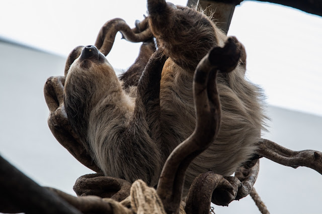 A wracając do zwierzaków. Ciasno wydawało nam się tylko w terrarium. Szybko je przebiegliśmy, bo jakoś jaszczury, węże i skorpiony nie robiły na nas wrażenia. W Azji mamy je na co dzień w domu. Za to zakochaliśmy się w leniwcach i ich hipnotyzującym rytmie życia. Wisiały swobodnie tuż nad naszą głową i gdyby tylko zechciały szybciej zejść, można by je dotknąć. Bardziej chętne do głaskania były zwierzaki w dziecięcym zwierzyńcu — kozy, kaczki, świnie, owce i inne niby całkiem zwyczajne stworzenia. Marysię jednak ciągnęło do wszystkiego, co wielkie — słonie, nosorożce, niedźwiedzie. No i do pingwinów oczywiście. Można je znaleźć przy Afrykarium, jednak zanim tu dotarliśmy, zaczęliśmy lekko opadać z sił. Już bardzo leniwie snuliśmy się podglądając płaszczki, krokodyle, kolorowe rybki, wielkie żółwie i foki, wygrzewające się na kamieniach. Afrykarium robi wrażenie, zwłaszcza jego rozwiązania architektoniczne. Można tutaj podglądać zwierzęta w różnej perspektywy — patrząc na nurkujące ryby, podglądamy ptaki drepczące ponad taflą wody. Całe wrocławskie ZOO zdaje się dawać swoim mieszkańcom sporo przestrzeni i oddechu. Kraty nie są tutaj tak nachalne, jak w przeciętnych miejscach tego typu. Jest wiele fajnych i zaskakujących rozwiązań, np. zwierzaki przebiegają sobie tunelami z siatki zawieszonymi nad ścieżkami dla zwiedzających. O naszym podejściu do ZOO pisaliśmy przy okazji wizyty w Bunchawak i jak wiecie, zawsze dręczy nas pytanie, czy te miejsca służą zwierzętom, czy odwrotnie. Czy odwiedzać je, czy unikać. Teoria wiemy, jaka jest, ale życie często odbiega od idealistycznych założeń. Przyznam jednak, że ZOO we Wrocławiu podniosło nas na duchu. Tutaj można uwierzyć w to, że celem ZOO jest edukacja i ochrona ginących gatunków, a zwierzęta przechowywane tu będą do czasu, kiedy bezpiecznie będzie można zwrócić je naturze.